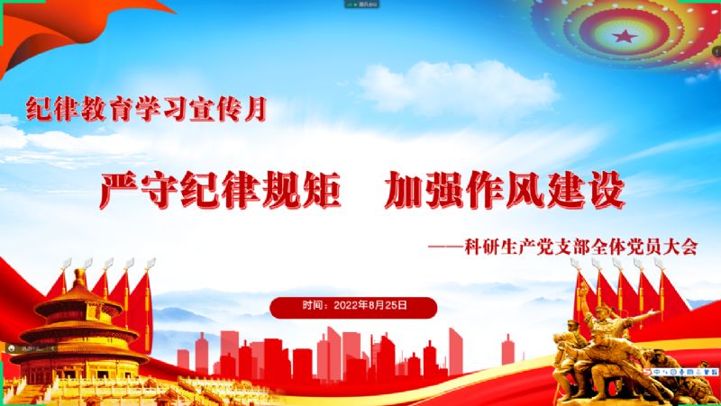 根據(jù)《中共陜西省機械研究院有限公司委員會“關于開展‘紀律教育學習宣傳月’活動的方案”》相關要求,2022年8月25日上午10點,科研生產(chǎn)黨支部開展以“嚴守紀律規(guī)矩,加強作風建設”為主題的線上全體黨員大會,會議由支部書記段偉飛主持。