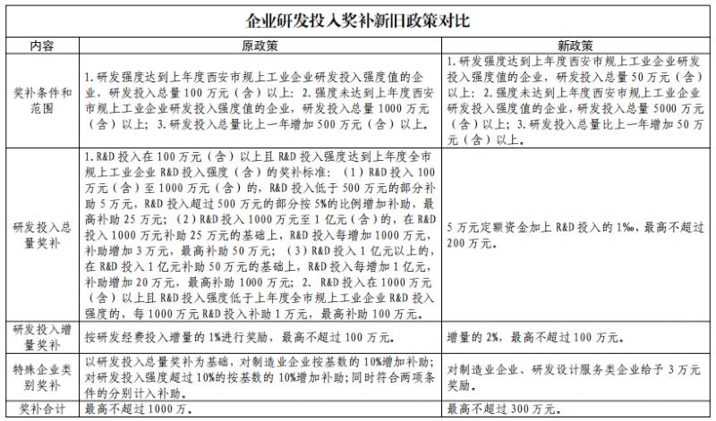 本次修訂主要是落實市委、市政府支持規(guī)上企業(yè)加大研發(fā)投入有關要求,并結合我局預算實際,主要對以下幾個方面進行修訂:一是擴大政策覆蓋范圍。將研發(fā)投入總量100萬元和強度達到上年度西安市規(guī)上工業(yè)企業(yè)研發(fā)投入強度值的企業(yè)的條件門檻降低為研發(fā)投入總量50萬元和強度達到上年度西安市規(guī)上工業(yè)企業(yè)研發(fā)投入強度值的企業(yè),擴大政策覆蓋范圍,引導規(guī)上企業(yè)持續(xù)加大研發(fā)投入支出。二是調(diào)整獎補標準。結合經(jīng)費預算實際,調(diào)整了補助標準,由原來分檔改為在補助5萬元基礎上,按R&D投入的1‰增加補助,最高200萬元。三是加大制造業(yè)和研發(fā)設計服務業(yè)的企業(yè)獎補力度。根據(jù)市委、市政府有關要求,加大先進制造業(yè)、研發(fā)設計企業(yè)獎補力度,對制造業(yè)和研發(fā)設計服務業(yè)企業(yè)分別在符合獎補條件基礎上增加補助3萬元。四是調(diào)整增量獎勵門檻和標準。為引導企業(yè)持續(xù)加大研發(fā)投入支出,將研發(fā)投入增量獎勵政策調(diào)整為50萬元,按R&D投入增量的2‰進行獎勵,最高100萬元。