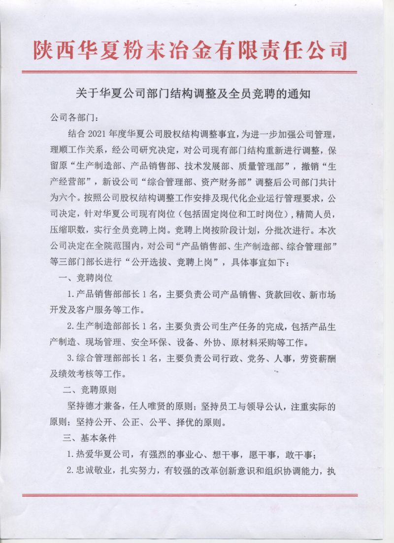 關(guān)于華夏公司部門結(jié)構(gòu)調(diào)整及全員競聘的通知